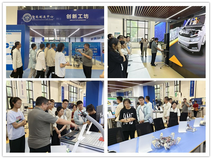 最后,师生们来到天津大学智能制造中心,在郑惠江教授的带领下,他们观看了机械工程学院的宣传片、参观了智能制造工程中心的实践教学环境,近距离观看了仿生机器人、无人快递车等课程作品,感受到了传统机械与现代智能技术的完美融合。
