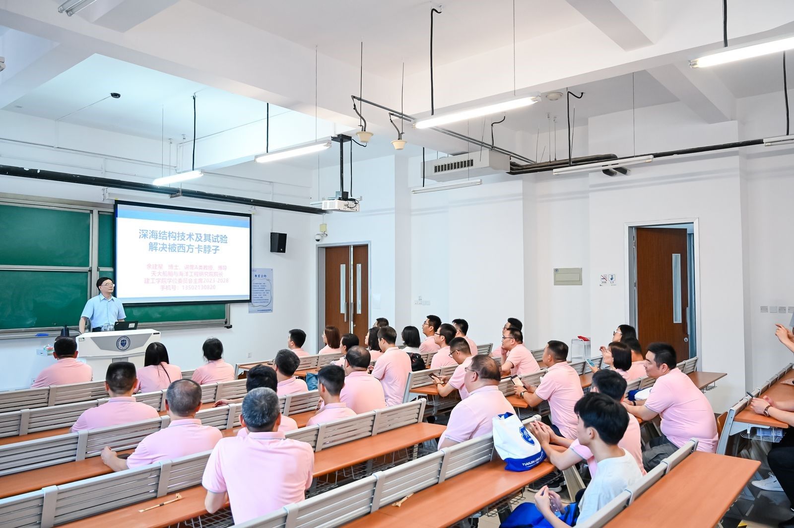 之后,校友们参观了深水结构实验室,余建星介绍了实验室发展历程、主攻方向、重点任务以及近年来在国内外具有广泛影响的创新性成果等,在关键技术攻关、成果转化、推动服务行业和地方经济发展中起到重要作用,已经解决了被西方卡脖子难题。