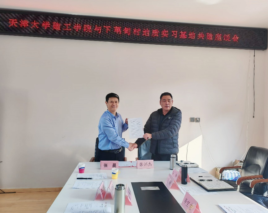 会后,张晨副院长与下苇甸村党支部负责人张怀杰进行了基地共建的签约和授牌仪式。